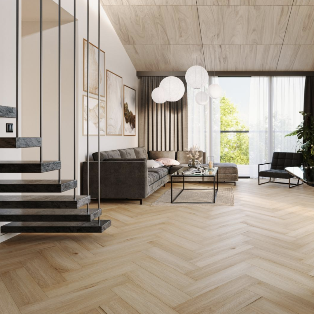 Vinylgulv Arbiton Amaron Herringbone – YANKEE EIK – 5mm/0,55mm Oppdag YANKEE EIK vinylgulv fra Arbiton Amaron Herringbone-kolleksjonen, som kombinerer vakker design med imponerende kvalitet. Dette gulvet har en HD Mineral Core-kjerne som gir ekstra styrke og holdbarhet, samtidig som det imiterer utseendet til tradisjonelt tregulv. YANKEE EIK er designet for å legges i fiskebensmønster eller andre mønstre, uten de vanlige utfordringene som kommer med tre. Med en bruksklasse på 23, 33 og 42, er dette gulvet egnet for både bolig- og kommersielle områder. Den naturlige nyansen (fargenummer: CA 153) og 4V avfasningen gir gulvet en sofistikert finish. Med en toppflate på 0,55 mm og en 20 års garanti, sikrer YANKEE EIK både holdbarhet og estetisk appell. Den avanserte 5Gi låseteknologien gjør installasjonen enkel og effektiv. Velg YANKEE EIK for et gulv som kombinerer moderne trender med enestående ytelse.